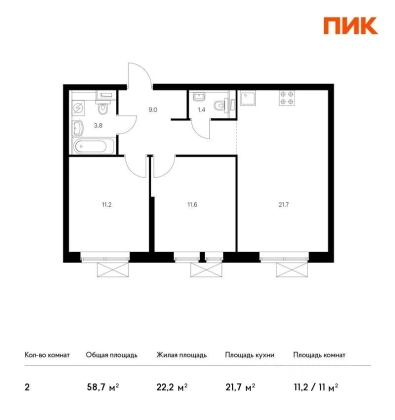 Продаётся 2-комн. квартира площадью 58,7 кв.м на 14 этаже 33 этажного дома (Корпус 2.1, Секция 1) проекта ПИК "Лосиноостровский парк". Светлый просторный подъезд на уровне земли, функциональная планировка, большие окна, c отделкой.