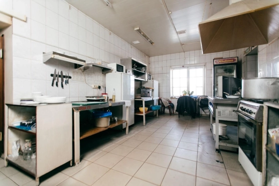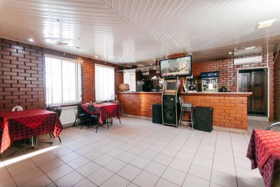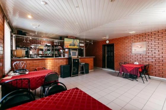 Коммуникации: трехфазное электропитание 220/380В запитано от отдельной подстанции, расчетная мощность 100-150 кВатт, газоснабжение, холодное водоснабжение обеспечивается от собственной скважины, центральная канализация. В помещении произведен качественный ремонт, подключены системы видеонаблюдения и пожарной сигнализации, во дворе оборудована летняя площадка.