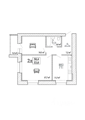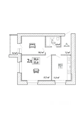Продается 2-х комн. квартира, 53.6 кв.м., 1/8 эт
