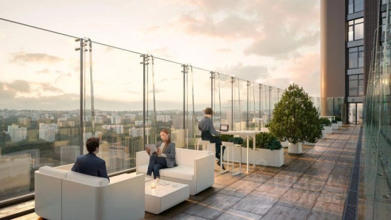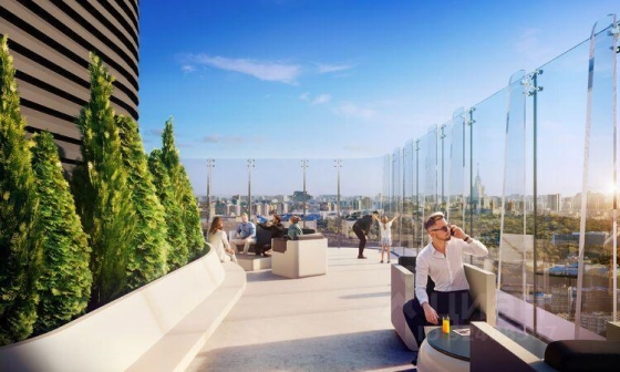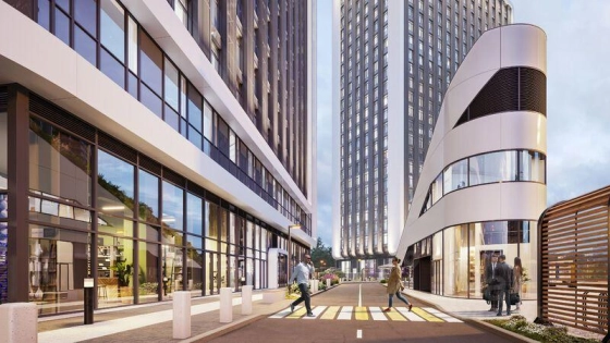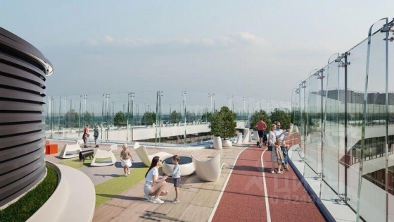 В доме два кафе, а напротив - ресторан с зелеными террасами на крыше. Это часть инфраструктуры квартала СОБЫТИЕ формата "город в городе" - с ресторанами, магазинами, фитнесом, салонами красоты, медцентрами и др. В квартале планируется построить две школы на 2750 мест и десять детских садов на 1200 мест.